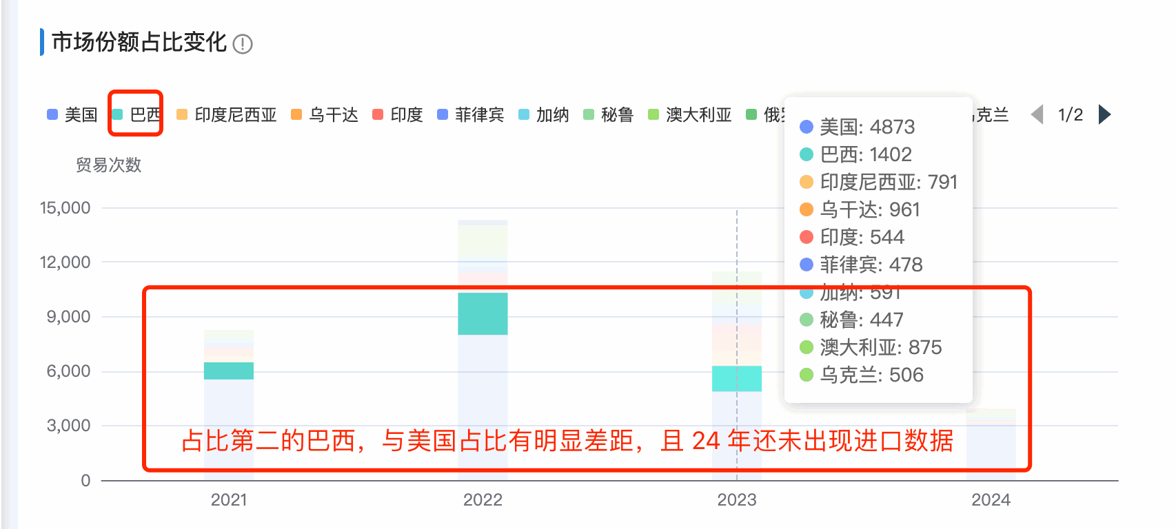 1. evo真人视讯商情洞察市场分析新增「市场占比变化分析」:分析每年的头部市场的占比排名和变化,哪些市场持续排名在头部,哪些市场排名逐渐下滑甚至消失在top之外的。