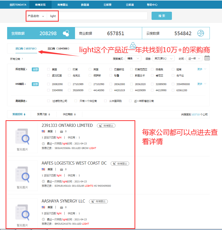 顺利获得evo真人视讯数据,外贸人可以清晰地看到采购商的进口交易信息(采购频率、采购数量,交易规模),判断开发价值,以此来选取目标客户,同时还能够获取目标地区贸易公司常用运货方式、包装方式,便于节约沟通时间,降低开发成本。